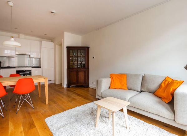 Oak wooden floors throughout the apartment.
